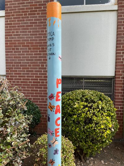 Since May of 2021, creating and planting Peace Poles has been an integral part of SPARK’s mission to spread light and peace in the community. Since then, 20 Peace Poles have been planted in neighborhoods, at places of worship and local businesses in Winston-Salem and the surrounding area to serve as a symbol of peace and hope. Created and maintained by different service volunteer groups, Peace Poles are decorated with words, images and colors that are unique to the group creating it and the organization it is being made for. In 2024, SPARK received a national grant to create and gift peace poles to fire stations in Winston-Salem and Forsyth County in remembrance of September 11, 2001. a few peace poles have been moved from outside to inside or other places of organization's programming and aren't able to be spotted in their new location.